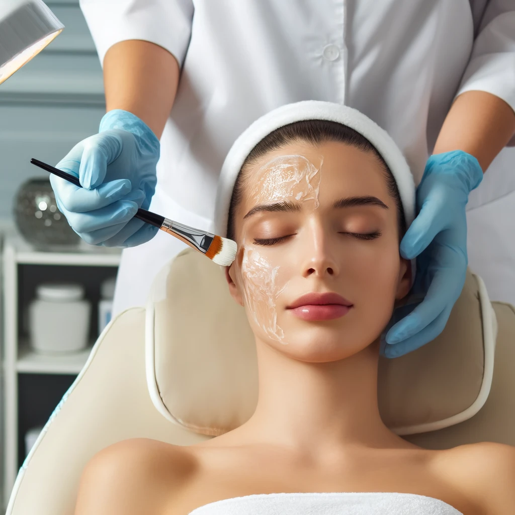 Exfoliating treatment using acids to remove dead skin cells, revealing fresher, smoother skin.