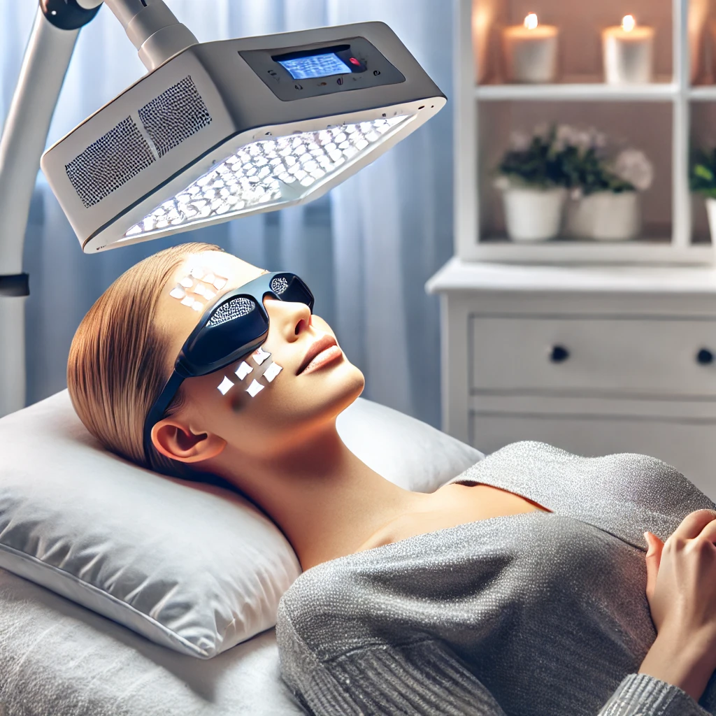Non-invasive treatment using LED lights to reduce inflammation, acne, and improve skin texture.