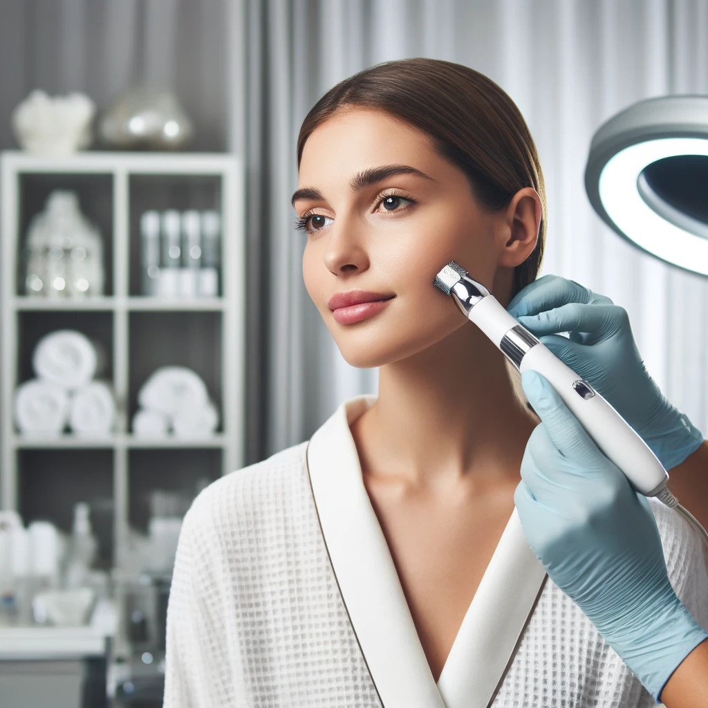 Collagen induction therapy using fine needles to reduce scars, wrinkles, and improve skin texture.